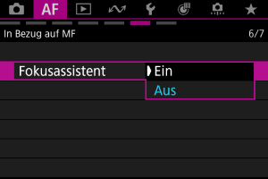 Das Einstellen von [: Fokusassistent] auf [Ein] bietet einen Führungsrahmen, der angibt, in welche Richtung der Fokus eingestellt werden soll und wie weit die Einstellung gehen soll, um die Person zu fokussieren.