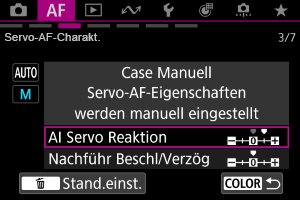 Sie können die Parameter für die Servo AF-Nachführung (Reaktion der Motivverfolgung und Beschleunigungs-/Verzögerungsverfolgung) je nach Motiv und Aufnahmesituation einstellen.