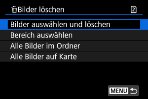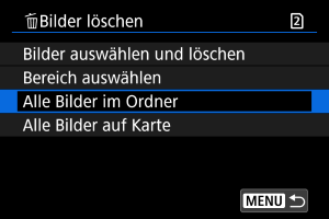 : Bilder löschen] wählen, werden alle Bilder in dem Ordner oder auf der Karte gelöscht.