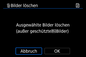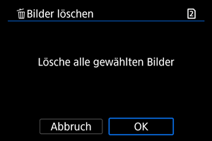 - Das Löschen von Bildern durch Auswahl von [Alle Bilder auf Karte] gilt für die Karte, die unter [