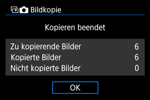 - Die Ergebnisse werden nach Abschluss des Kopiervorgangs angezeigt. Wählen Sie [OK], um zum Bildschirm in Schritt 2 zurückzukehren.