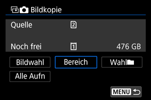 - Mit [Bildwahl] können Bilder in mehreren Ordnern nicht gleichzeitig kopiert werden. Wählen Sie Bilder aus, die jeweils aus einem Ordner kopiert werden sollen.