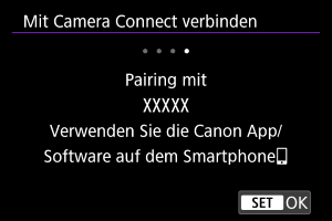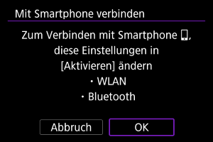 Aktivieren Sie Bluetooth und WLAN über den Smartphone-Einstellungsbildschirm. Ein Pairing mit der Kamera ist über den Bluetooth-Einstellungsbildschirm des Smartphones nicht möglich.