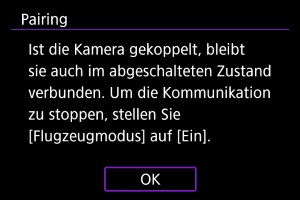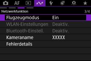 Wenn Sie es vorziehen, bei ausgeschalteter Kamera nicht über WLAN/Bluetooth mit der Kamera verbunden zu bleiben, stellen Sie entweder [: Flugzeugmodus] auf [Ein] bzw. [