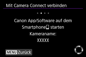 gedrückt haben, tippen Sie auf eine Camera Connect-Funktion, um eine WLAN-Verbindung herzustellen und nochmals neu bei Schritt 1 zu starten.