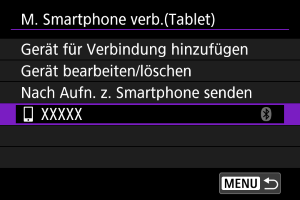 Sie können den Kurznamen der Geräte ändern, mit denen sich die Kamera verbindet.