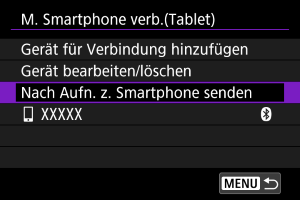 - Ermöglicht die Fernsteuerung der Kamera von einem Smartphone aus, das über Bluetooth gekoppelt ist. (Nicht verfügbar bei WLAN-Verbindungen.)