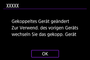 - Es wird eine Meldung angezeigt, wenn die Kamera bereits mit einem anderen Gerät gekoppelt ist. Wählen Sie [OK], um die aktuelle Bluetooth-Verbindung zu beenden.