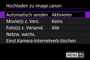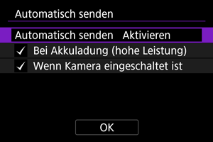- [Wenn Kamera eingeschaltet ist]: Das automatische Senden beginnt, wenn die Kamera eingeschaltet wird.