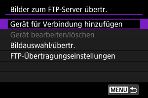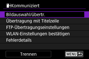 Mit der FTP-Übertragung können Sie Bilder während der Aufnahme automatisch an den FTP-Server senden, oder Sie können später eine Bildfolge auswählen und übertragen.
