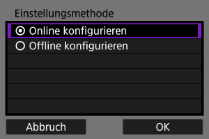 - Durch die Auswahl von [Offline konfigurieren] wird die Kamera nach der Konfiguration vom Netzwerk getrennt.