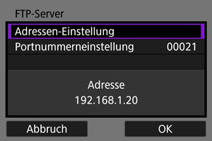 - Konfigurieren der FTP-Server-Verbindungseinstellungen