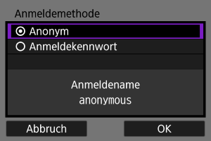 Falls Sie [Anmeldekennwort] ausgewählt haben, geben Sie den Namen und das Passwort ein.