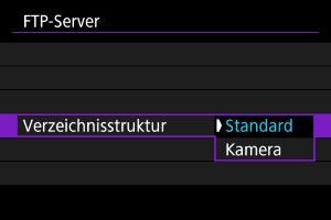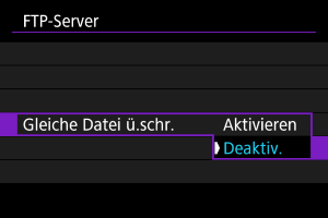 Wenn [Aktivieren] eingestellt ist und für einen bestimmten Zeitraum keine Bildübertragung erfolgt, wird die Kamera vom FTP-Server abgemeldet und die WLAN-Verbindung wird beendet. Die Verbindung wird automatisch wiederhergestellt, wenn die Kamera wieder für die Bildübertragung bereit ist. Wenn Sie die WLAN-Verbindung nicht beenden möchten, stellen Sie [Deaktiv.] ein.