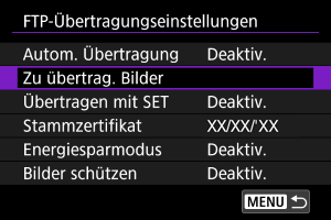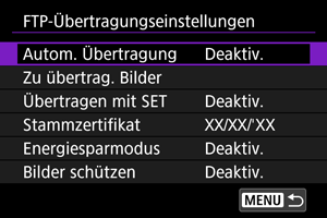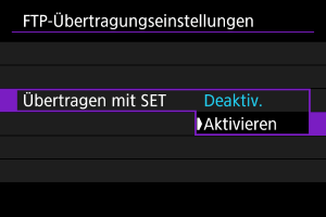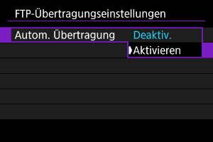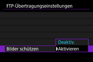 Um Bilder, die per FTP übertragen werden, automatisch zu schützen, stellen Sie [Aktivieren] () ein.