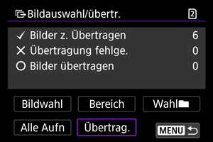 Im [Bildauswahl/übertr.]-Bildschirm können Sie mehrere Bilder auswählen und alle auf einmal übertragen.