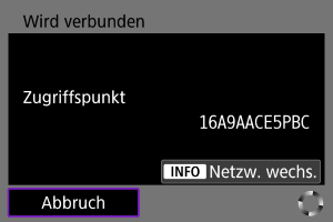 Falls die Übertragung fehlschlägt, blinkt das WLAN-Symbol vorübergehend. In diesem Fall wird der folgende Bildschirm angezeigt, nachdem Sie die Taste gedrückt und [