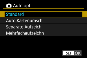 Aufn.opt.] auf [Standard]/[Relay-Aufnahme] eingestellt ist, wählen Sie die Karte für die Aufnahme und Wiedergabe aus.