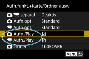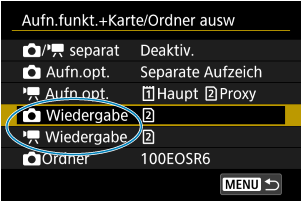 Aufnahme/Wiedergabeauswahl mit zwei eingesetzten Karten