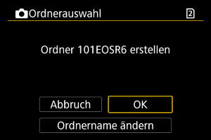 Genau wie [Standard], aber zusätzlich wechselt die Kamera zur anderen Karte, wenn eine Karte voll ist. Wenn in der Kamera die Karte gewechselt wird, wird ein neuer Ordner erstellt.