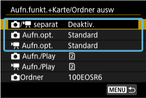 Wenn [ Aufn.opt.] auf [Separate Aufzeich]/[Mehrfachaufzeichn] eingestellt ist oder wenn [