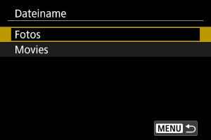 Konfigurieren Sie Einstellungen für Movie-Dateinamen.