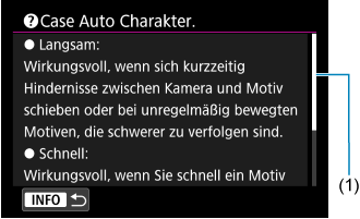 aufrufen. Drücken Sie die Taste erneut, damit der Hilfe-Bildschirm geschlossen wird. Um durch den Bildschirm zu blättern, wenn rechts eine Bildlaufleiste (1) angezeigt wird, drehen sie das Wahlrad