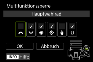 Wenn [ Hilfe] angezeigt wird, können Sie eine Beschreibung der Funktion durch Drücken der Taste