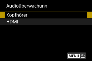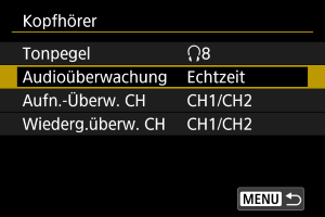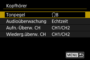 Sie können die Audioeinstellungen für die Movie-Aufnahme auswählen, die für die Kopfhörerausgabe verwendet werden sollen. Um das Rauschen bei der Audioaufnahme zu reduzieren, konfigurieren Sie [Audio-Rauschreduz.] ().