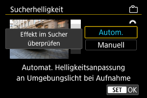 , um Sucherhelligkeit einzustellen, und drücken Sie dann
