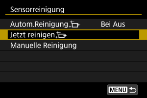- Das Ergebnis lässt sich selbst durch wiederholte Sensorreinigung nicht entscheidend verbessern. Beachten Sie, dass [Jetzt reinigen