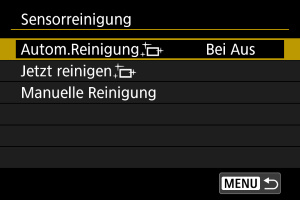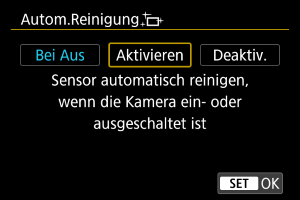 - Bei Einstellung auf [Bei Aus] oder [Aktivieren] wird der Sensor gereinigt, wenn der Bildschirm ausgeschaltet wird, auch wenn er automatisch ausgeschaltet wurde.