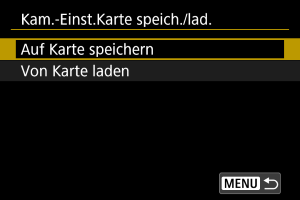 Speichern/Laden von Kameraeinstellungen auf eine Karte