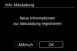 Sie können bis zu sechs LP-E6P-Akkus auf der Kamera registrieren. Führen Sie die folgenden Schritte für jeden Akku durch, um mehrere Akkus auf der Kamera zu registrieren.