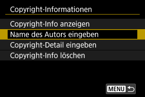 Wenn Sie in Schritt 2 [Copyright-Info anzeigen] wählen, können Sie die Informationen [Autor] und [Copyright], die Sie eingegeben haben, überprüfen.
