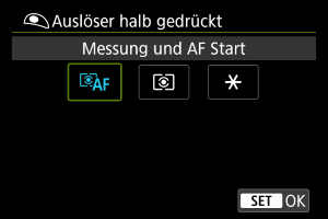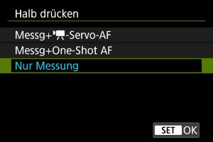 Legen Sie fest, welche Funktion ausgeführt werden soll, wenn der Auslöser halb durchgedrückt wird.