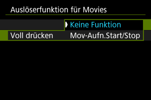 Sie können die Funktionen einstellen, die durch halbes oder ganzes Durchdrücken des Auslösers während der Movie-Aufnahme ausgeführt werden.
