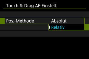 Indem Sie [Pos.-Methode] auf [Relativ] einstellen, können Sie das Ausmaß der Bewegungen als Reaktion auf das Tippen oder Ziehen festlegen.