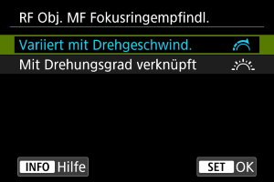Sie können die Empfindlichkeit des Fokusrings des RF Objektivs einstellen.