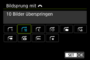 - Wenn Sie [Bilder entsprechend der angegeb. Zahl überspringen] wählen, können Sie durch Drehen des Wahlrads