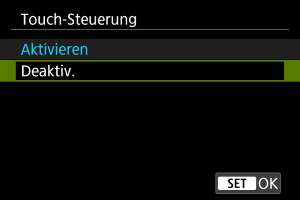 - Um die Touch-Funktionen zu deaktivieren, wählen Sie [Deaktiv.].