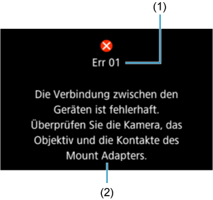 Wenn bei der Kamera ein Problem auftritt, wird eine Fehlermeldung angezeigt. Befolgen Sie die Anleitungen auf dem Bildschirm.