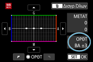 εμφανίζεται στο επάνω πάνελ LCD κατά τη διάρκεια της διόρθωσης της ισορροπίας λευκού.