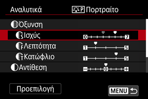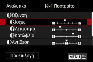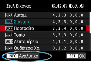 - Επιλέγοντας [Προεπιλογή] στο βήμα 3, μπορείτε να επαναφέρετε τις προεπιλεγμένες ρυθμίσεις παραμέτρων του αντίστοιχου Στυλ Εικόνας.