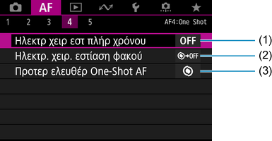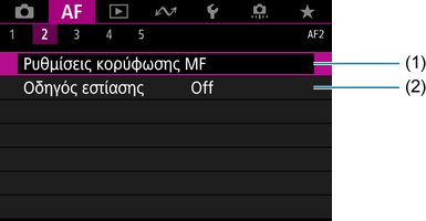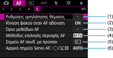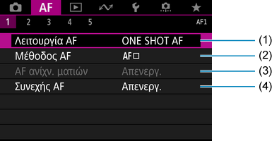 Καρτέλες μενού: Καρτέλα AF (Λήψη με Άμεση προβολή)