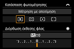 Κατάσταση φωτομέτρησης/διόρθωση έκθεσης με φλας