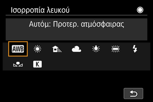 - (16)Ισορροπία λευκού/Διόρθωση ισορροπίας λευκού
