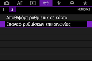 1. Επιλέξτε [Δυνατότητες ασύρματης σύνδεσης: Επαναφ ρυθμίσεων επικοινωνίας].