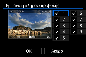Μπορείτε να καθορίσετε οθόνες και συνοδευτικές πληροφορίες που θα εμφανίζονται κατά την προβολή των εικόνων.