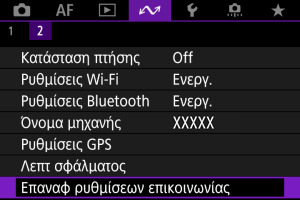 - Μπορείτε να διαγράψετε όλες τις ρυθμίσεις ασύρματης επικοινωνίας ορίζοντας την επιλογή [Ρυθμίσεις επικοινωνίας] για τη ρύθμιση [Άλλες ρυθμίσεις] στο στοιχείο [